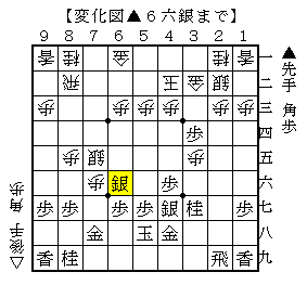 この手順は後手は銀交換をせず△6四銀と立て直す手で、以下じっくりした展開になるようです。