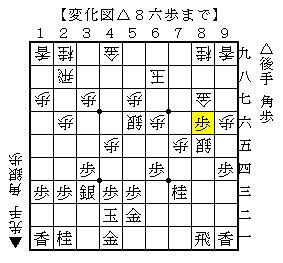 △7六歩以下は変化手順で興味深いのは、先手が▲7五歩と位を取った場合の展開です。