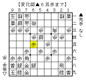 ただし、後手も6筋に飛車がいるので6筋の歩を伸ばされる変化が、先手も気になります。