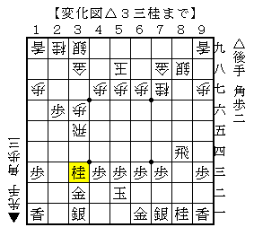 △3三桂は先手の飛車の直通を避けるのと、将来的に△4五桂と使う筋です。