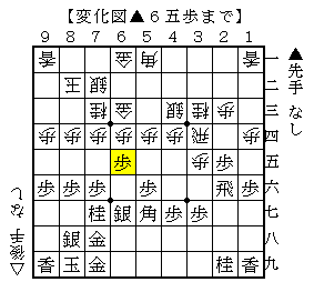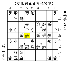 本譜は以下、△8三銀▲2四歩△同歩▲3六歩△4五桂▲4六角△3六歩▲6五歩で、ソフトの評価値+400で先手有利。