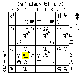 ▲9四歩△同歩▲8五桂△5六歩▲3七桂で、ソフトの評価値-256で互角。