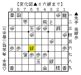 先手の▲6六銀では▲7四銀△同玉▲7二飛成もありますが、△7三金とはじかれたときに、後手玉を寄せきるか攻めながら先手玉を緩和する手があればいいですが、そうでないと忙しくなります。