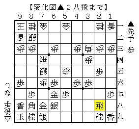 先手の▲2八飛は2筋から飛車を使う狙いです。