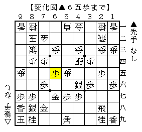▲5九角としたのなら、▲2六角や▲3七角が形ですが、後手の形を見る▲6五歩はなかなか指せません。