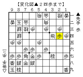 ▲2四歩に△3三歩なら、▲3五飛△2四歩▲2二歩△5三角▲3六飛△1三桂▲2一歩成で、ソフトの評価値+470で先手有利。