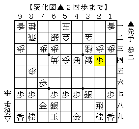 ▲2四歩に△2五桂なら、▲4六銀△4五歩▲2三歩成△同金▲2四歩△同金▲5五銀△同歩▲3三角成△4二角▲1一馬で、ソフトの評価値+77で互角。