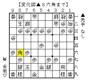▲8六角に△4二銀なら▲5四歩で、△同歩なら▲4二角成△同金▲2二歩成でソフトの評価値+1361で先手優勢。