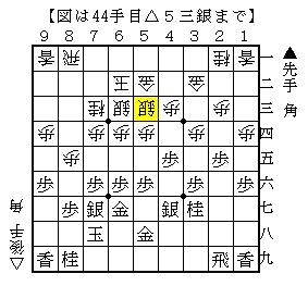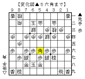 ▲5六角と打つ筋は、対角交換振り飛車でたまに見ますが、この戦型では初めて見ました。