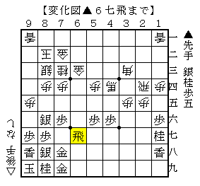 ▲3七飛△3五歩▲6七飛で、ソフトの評価値+436で先手有利。