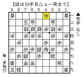 先手はここから▲8二歩と打つか、▲2三歩と打つか、▲5六飛と打つような感じです。