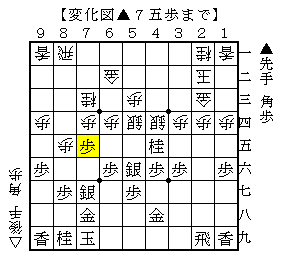 手順の△7四同銀で、一時的に後手の銀が浮いて陣形が崩れます。