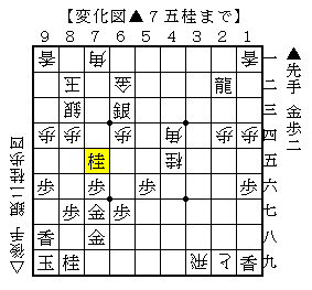 本譜は先受けで銀を1枚投入したので、攻めの戦力が弱くなり後手から△8五桂とゆっくりした手が間に合ってきました。