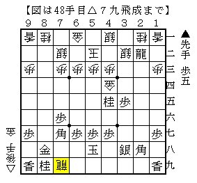 本譜は以下、▲3八銀△7九飛成で、ソフトの評価値-1109で後手優勢。