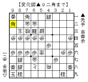 ▲9二角では、▲7四龍△同玉▲7五香△8三玉▲7四角までという手もありました。