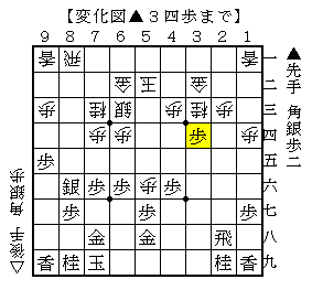 ▲3四歩に△4五桂なら、▲同歩△4六角▲2七飛△3六銀▲2六飛△5七歩成▲3六飛△1三角▲8八玉△5八と▲5六飛△5四歩▲5八飛で、ソフトの評価値+1062で先手優勢。
