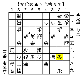 以下先手も▲2七香からいつでも後手玉に殺到する形を作ります。