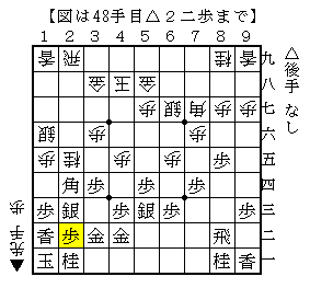 この手順は、△2二歩と受けた形です。