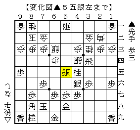 この▲5五銀左がうっかりしやすい手で、△同銀なら▲同銀△4五桂▲3二飛成が狙いです。