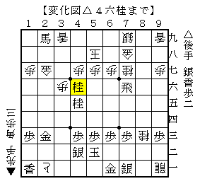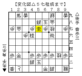 △5七桂成では△4六桂がありました。ソフトの評価値-99984で後手勝勢。