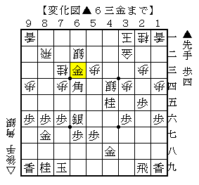 以下金銀交換で△6二銀と受けたときに▲6三金が少し打ちにくいですが、これで手になっているようです。