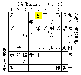 そこで△5九とが少し指しにくい手で、後手の持ち駒に金がないので少し難しいです。