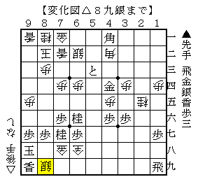 この手順は、△7八金から清算して△8九銀と打ち込む手です。