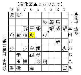 この手順は、△6六歩の取り込みに▲4二香成から▲6四歩とする手です。