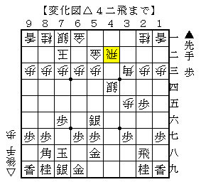 本譜は▲5六銀だったのですが、△4二飛ならソフトの評価値+63で互角。