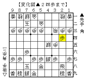 この手順は、▲4五歩から角交換して▲2四歩とする手です。
