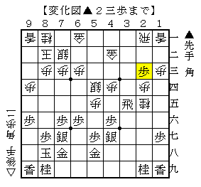 ▲3二角で▲2三歩で、ソフトの評価値+133で互角。