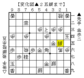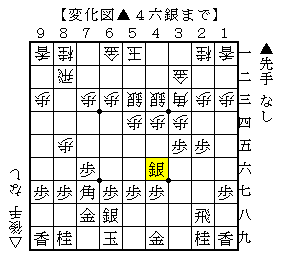 後手も5三の銀と5二の金が中央に配置すると結構手厚い陣形になり、これでいい勝負のようです。