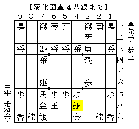 ▲4八金では▲4八銀がありました。ソフトの評価値+27で互角。