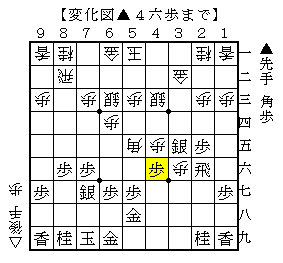 △1九角成を受けないといけないですが、ここで▲4六歩と突いてどうかという局面です。