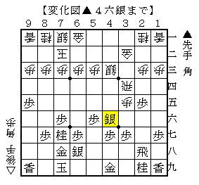 この手順は▲5七銀右から▲4六銀と右側の銀を4段目に繰り出す指し方です。