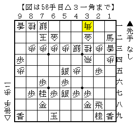 これは、香車を守るために後手に自陣角を打たせてまずまずかと思っていましたが、評価値を見るとやや先手が無理っぽい感じがします。