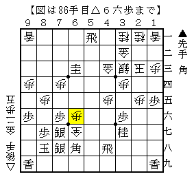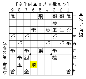 実戦は△6六歩に▲同銀△同成銀で、ソフトの評価値+202で互角と進みましたが先手が銀1枚の駒損です。
