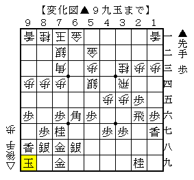 ▲9八香△5四銀▲9九玉で、ソフトの評価値+245で互角。