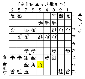 この手順は、金と銀の交換で△5六飛と捌いた展開です。