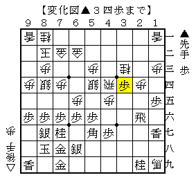 ▲3四歩に△4六歩なら、▲同角△同馬▲同飛△同飛▲同歩△2五桂▲4一飛で、ソフトの評価値+403で先手有利。