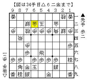 ▲1七桂△7三桂▲5六飛△6二金で、ソフトの評価値-205で互角。