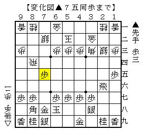この手順は△7三桂と桂馬を活用する手ですが、▲7六飛と桂頭を狙う手で後手の7筋の突き捨てを逆用して狙いは▲7四歩から▲7三歩成です。