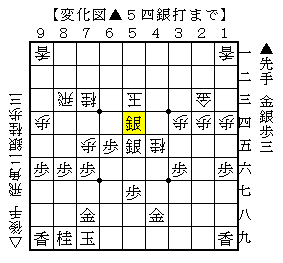 この手順は△5三同玉に▲5四銀打とする手でこのときの持ち駒が金と銀がやや盲点です。