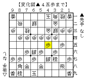 ▲5五歩では▲4五歩がありました。ソフトの評価値+143で互角。