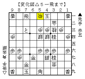 この手順は、△5一飛以外の合い駒なら▲6二とで受けなしなので△5一飛とするしかありません。