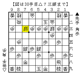 △7三銀は次に△8六歩から歩の交換を目指した手ですが、ここでどのように指すか手が広いところです。
