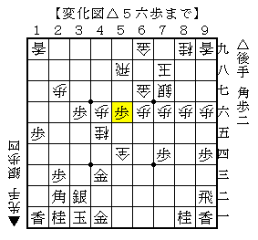 この△5六歩は次に△5四金とする狙いですが、ここで先手に迷ってもらうという意味みたいです。