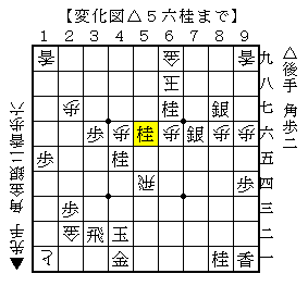 △5六桂に▲5八玉なら、△4八桂成▲同玉△3七歩成▲5八玉△4七角▲6八玉△6九角成▲同玉△7九桂成▲5九玉△4八金▲6八玉△7八成桂まで。