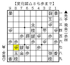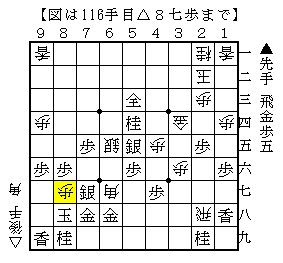 本譜は△8七歩以下▲9七玉△6八飛成▲6二飛△1三玉▲6七金△8八角以下詰み。