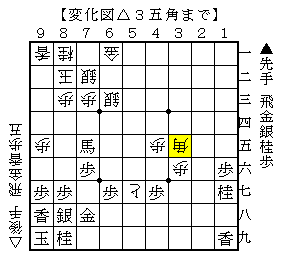 実戦は、▲5六歩△2五歩▲4八角△3五桂で、ソフトの評価値-1238で後手優勢。